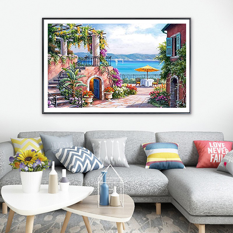 DIY Diamond Painting Full pemandangan wisata tepi laut 40x30cm D951